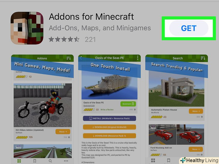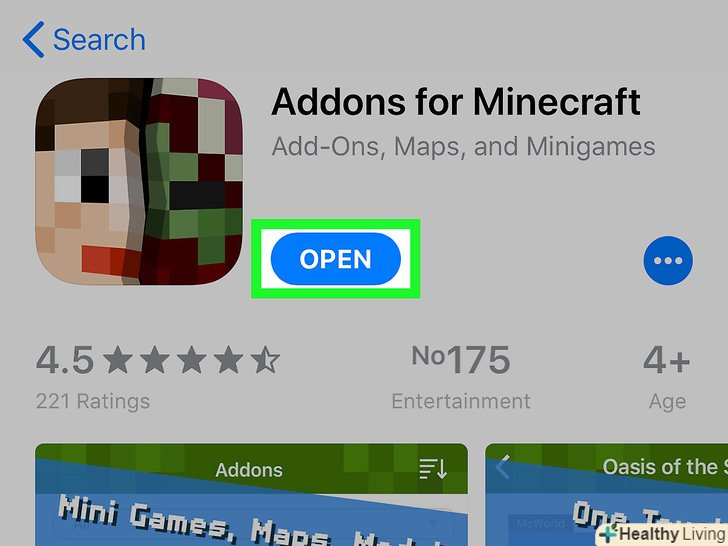Встановіть додаток MCPE Addons. для цього запустіть додаток App Store, а потім: