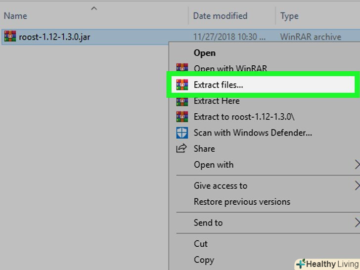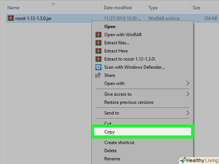 Скопіюйте мод. відкрийте витягнуту папку, знайдіть в ній JAR-файл, клацніть по ньому, а потім натисніть Ctrl + C (Windows) або ⌘ Command + C (Mac).- На комп'ютері Mac значок JAR-файлу виглядає як чашка кави на білому тлі.