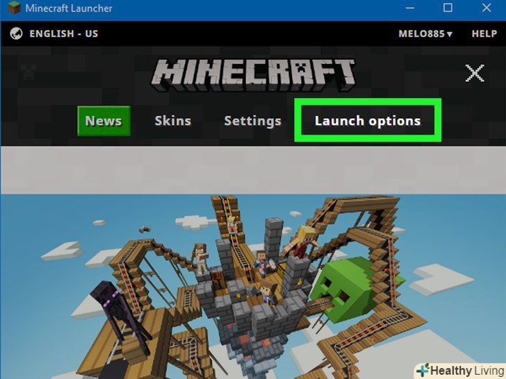 Клацніть поLaunch options (параметри, опції, налаштування або аналогічна опція). це вкладка у верхній правій частині вікна лаунчер.