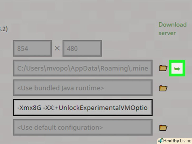 Відкрийте папку з грою Minecraft. клацніть по зеленій спрямованої вправо стрілкою, яка знаходиться праворуч в розділі «Game directory» (Каталог гри, ігрова папка або аналогічна опція). Відкриється папка, в якій знаходяться всі папки і файли гри Minecraft.