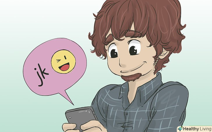 Злегка дражніть. по СМС або в чаті неможливо використовувати мову тіла, тому вам доведеться покладатися лише на слова, щоб створити невимушену і веселу обстановку. Використовуйте особисті жарти (засновані на подіях, в яких ви обидва брали участь), сарказм («Так, я впевнений, що ти схожий на монстра з ранку;)») і перебільшення («ти, напевно, в мільйон разів робиш це краще, ніж я»).- Дайте зрозуміти, що Ви жартуєте. Недолік СМС в тому, що не завжди можна зрозуміти стоять за словами емоції. Якщо ви збираєтеся фліртувати з кимось, дратуючи, то дайте знати, що це жарт. Для цього ви можете використовувати підморгують усміхнені смайлики, писати тільки великими літерами або використовувати багато знаків оклику.