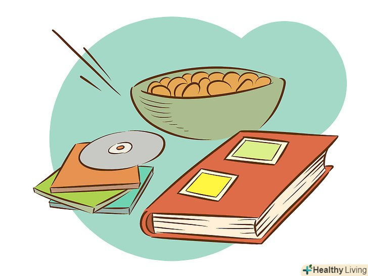 Майте в розпорядженні кілька об'єктів для підтримки бесіди. щоб відчувати себе спокійно, виставте кілька речей, щоб у гостей була тема для бесіди в разі, якщо розмова не клеїться. Це може бути колекція ваших музичних альбомів, фотоальбом або сувеніри, придбані в недавній поїздці. Всього кілька кидаються в очі речей дадуть вашим гостям можливість запитати вас або поговорити про них.- Приготування особливої закуски або коктейлю, який ваші гості не пробували раніше, також створить тему для розмови.