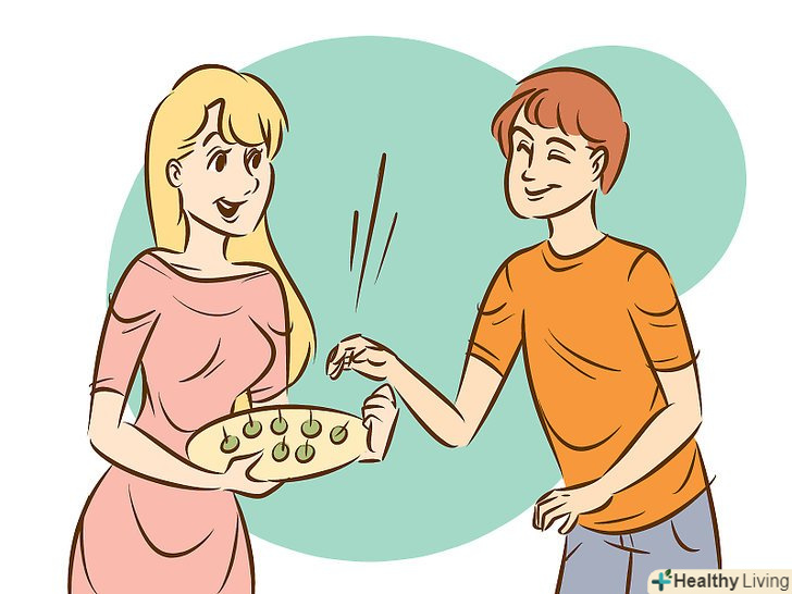Запропонуйте гостям їжу і випивку. як тільки ви вітали і направили гостей, переконайтеся, що у них є їжа і випивка в руках. Якщо у вас Вечірка з алкогольними напоями, то упевнившись, що у кожного є випивка, ви допоможете людям відчувати себе комфортно, а вечірці початися якомога швидше. Люди можуть посоромитися попросити їжі або випивку, так що переконайтеся, що запропонували кожному, що йому потрібно якомога швидше. brgt;- Відкрийте пиво, якщо люди хочуть пива, налийте їм вина, якщо вони цього хочуть або розкажіть їм про міцний спиртний напій, що у вас є, якщо це те, до чого у них є інтерес. Зрозуміло, якщо ви не хочете, щоб вечірка рано стала занадто гучною, ви можете прибрати міцний напій або запропонувати його пізніше.