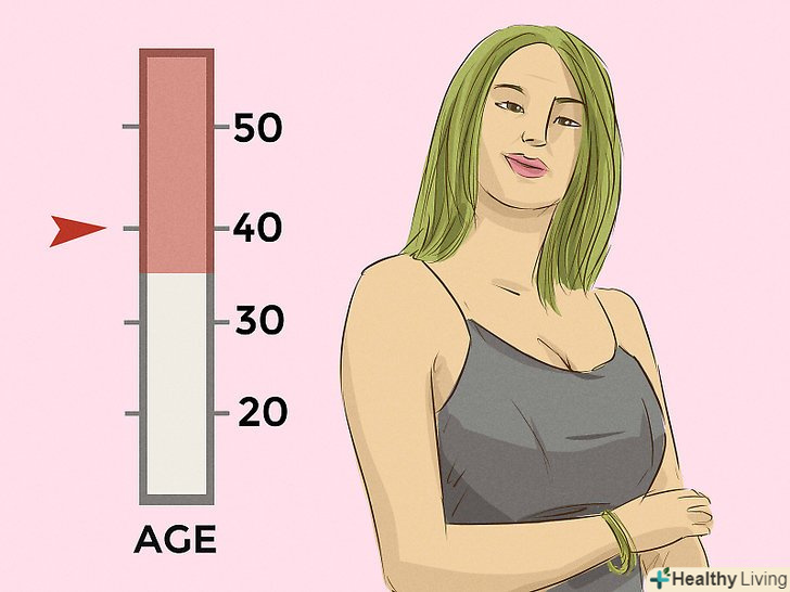 Оцініть її макіяж. дослідження еволюційної психології показали, що при оцінці жіночої привабливості фізична привабливість є більш вагомим фактором, ніж при оцінці чоловічої. [5] це означає, що менш привабливий чоловік може все ще бути бажаним завдяки своїй ерудиції, гумору, матеріальному стану та іншого, а жінок дуже часто судять за зовнішнім виглядом. З цієї причини з віком жінка може частіше робити акцент на макіяжі, щоб приховати ознаки старіння, які роблять її менш бажаною.- Ви можете помітити, що жінки середніх років наносять більше тонального крему або тіней, щоб надати обличчю гладкий рівний вигляд.