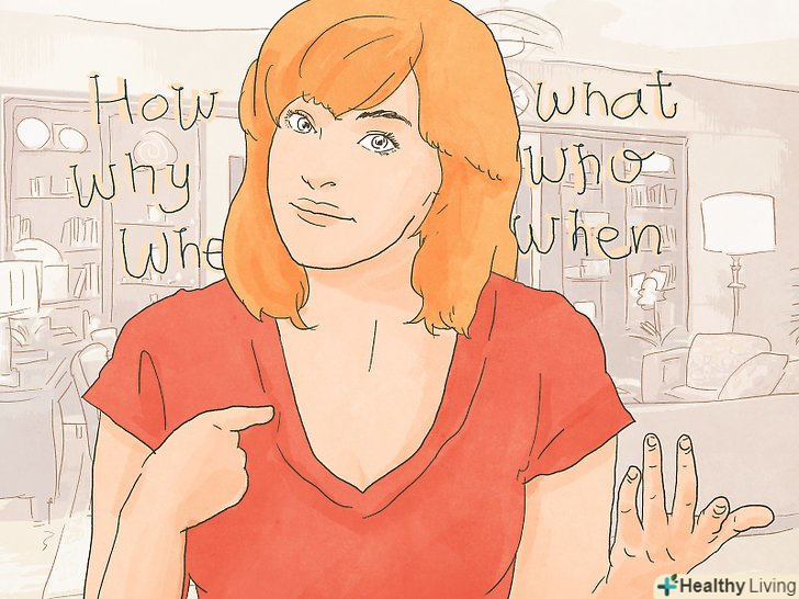 Задавайте питання. після того як ваша подруга пояснила свою позицію, знайдіть час, щоб обговорити всі питання і сумніви, які у вас можуть виникнути. Якщо ви задаєте питання, це покаже, що ви глибоко зацікавлені, і ви не просто приймаєте те, що сказала інша людина. Крім того, якщо співрозмовник не наважується висловити свою думку, задайте йому конкретні питання: [8]- Ви можете сказати: "Рита, я помітила, що ти злишся на мене. Я чимось тебе образила?". Рита може бути у нестямі через те, що ви стали найслабшим гравцем в команді. Їй набридло те, що ви пропускаєте тренування. Можливо, вона бачить ваш потенціал і засмучується через те, що ви не так віддані команді, як могли б.
