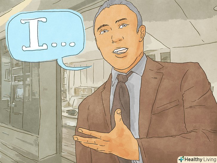 Намагайтеся говорити від першої особи. уникайте обвинувальних пропозицій від другої особи, обрамляйте їх пропозиціями від першого. Наприклад: "я відчуваю себе ображеним, коли ти ігноруєш мої потреби", а не: "ти постійно забуваєш, що мені потрібно покататися". Якщо ви фокусуєте увагу на собі ("я"), ви менше зачепите іншу людину. Таким чином ви почнете діалог. [2]