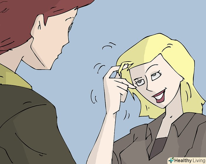 Встановіть зоровий контакт. зоровий контакт покаже йому, що Ви впевнені в собі і привабливі, а також посилаєте йому сигнали, що ви зацікавлені.- Перед тим, як почати розмову, зловіть його погляд, встановіть зоровий контакт на три секунди, потім посміхніться і відведіть погляд. Якщо він зацікавлений, він посміхнеться у відповідь і може навіть підійде ближче.