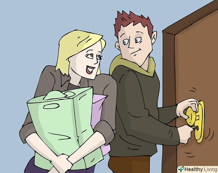 Попросіть про допомогу. хлопці не можуть встояти перед дамою в біді, так що попросити про допомогу – це хороший спосіб зав'язати розмову. Попросіть його допомогти вам з важкими сумками або відкрити двері, якщо у вас зайняті руки, або дістати щось з полиці, до якої ви не можете дотягнутися. Мило подякуйте йому перед тим, як перейти до нової теми.- Ще один варіант того, як попросити хлопця про допомогу – це запитати у нього дорогу. Якщо вам пощастить, він може навіть проводити вас до пункту призначення.