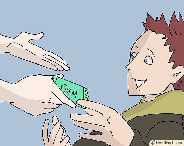Запропонуйте йому жуйку. або льодяник. Або цукерку. Якийсь маленький, добрий вчинок, який може почати розмову.