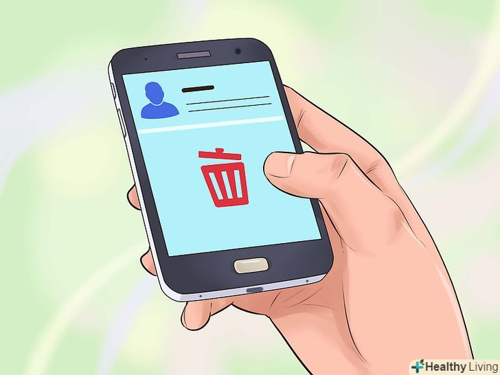 Намагайтеся уникати контакту з колишнім партнером. можливо, це не так просто зробити, особливо якщо вам важко прийняти те, що трапилося або ви дуже сумуєте за цією людиною. Цілком природно, що в таких обставинах ви будете шукати можливість побачити його. Однак зробіть все можливе, щоб не зустрічатися з колишнім партнером, поки ви не впораєтеся зі своїми емоціями. [5]- Видаліть номер цієї людини з пам'яті телефону. Завдяки цьому в пориві почуттів ви не відправите йому повідомлення і не зробите телефонний дзвінок.