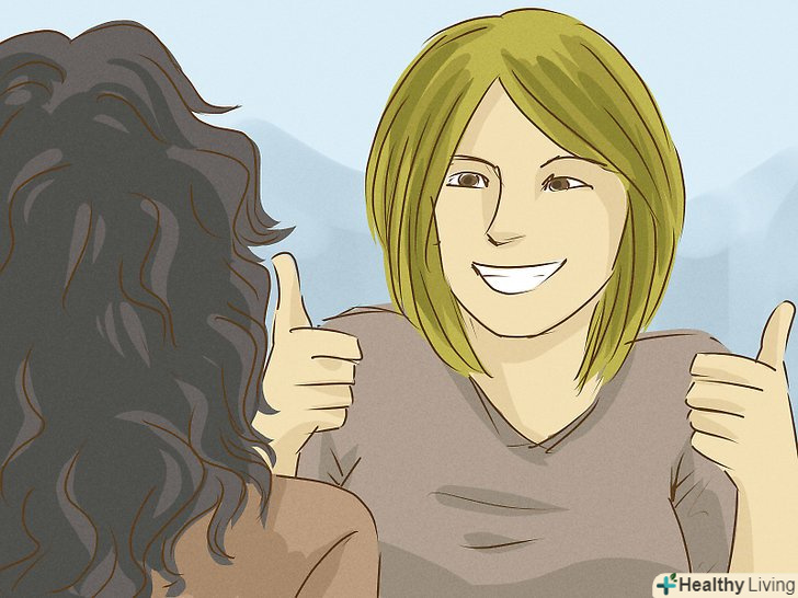 - Робіть компліменти вашим друзям. Якщо у вас є подруга, яка не любить своє волосся, скажіть їй, що її волосся прекрасне, або зробіть їй комплімент з приводу її милої посмішки. Ці слова необов'язково повинні бути правдою, але іноді їх просто необхідно використовувати, щоб підбадьорити людину.