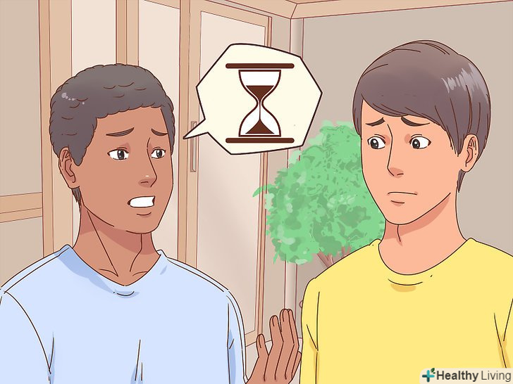 Дайте людині час обміркувати ваші слова. Здорово, якщо у відповідь ви отримаєте підтримку і слова схвалення. Однак не здавайтеся, якщо цього не станеться відразу ж. Деяким людям потрібен час, щоб обробити таку важливу інформацію. Не забувайте, що, швидше за все, вам теж потрібен час, щоб освоїтися зі своєю ідентичністю. [9]- Можна сказати: «ти здаєшся трохи приголомшеним. Хочеш, обговоримо це пізніше?»