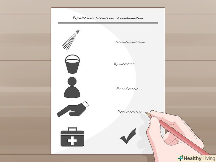 - Зберіть необхідні приналежності. Для роботи необхідні правильні інструменти. У разі прибирання будуть потрібні граблі, волоті і лопати, а також мішки для сміття. При виконанні складних робіт необхідні люди, які вміють поводитися зі спеціальними інструментами і управляти різними засобами. Також не забудьте взяти з собою аптечку. [18]