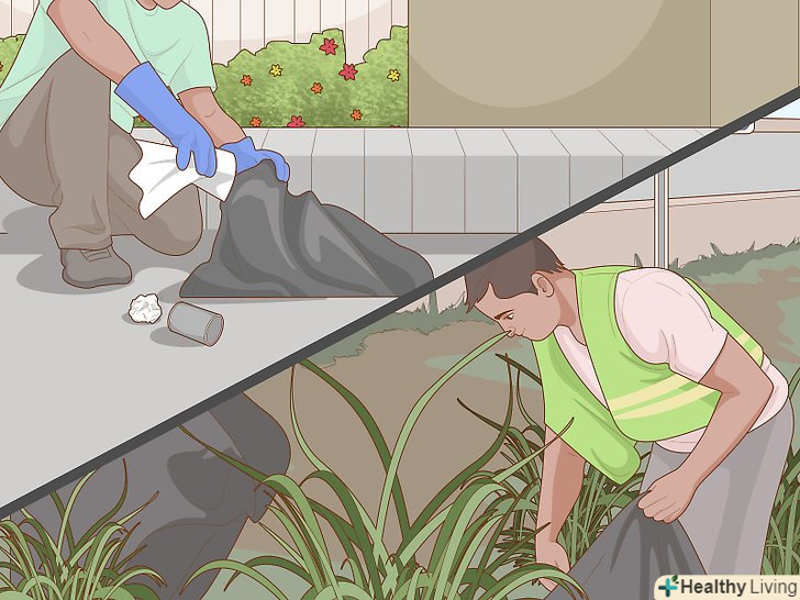 Збирайте сміття. сміття, яке викидають на землю оточуючі, відразу впадає в очі. Що ще гірше, він небезпечний для дітей, тварин і навколишнього середовища. Якщо ви помітили сміття на тротуарі в своєму районі, то не чекайте, що його прибере хтось інший. Проявіть ініціативу по догляду за своїм місцем проживання. [7] [8]- Проводьте дні чистоти з друзями і збирайте сміття в околицях своїх осель.