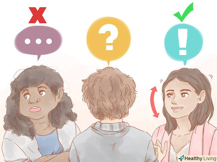Станьте активним слухачем. слухаючи людини, проявіть залученість в бесіді. Сконцентруйтеся на словах співрозмовника. Дивіться на людину, коли він щось вам розповідає. Кивайте головою на знак згоди, посміхайтеся і користуйтеся вигуками, наприклад: «Ага», «Ммм», «Нда». Тим самим ви покажете, що стежите за ходом бесіди. [22]- Намагайтеся не дивитися поверх голови співрозмовника або по сторонах довше, ніж пару секунд, інакше це може інтерпретуватися як ознака нудьги і неуважності.