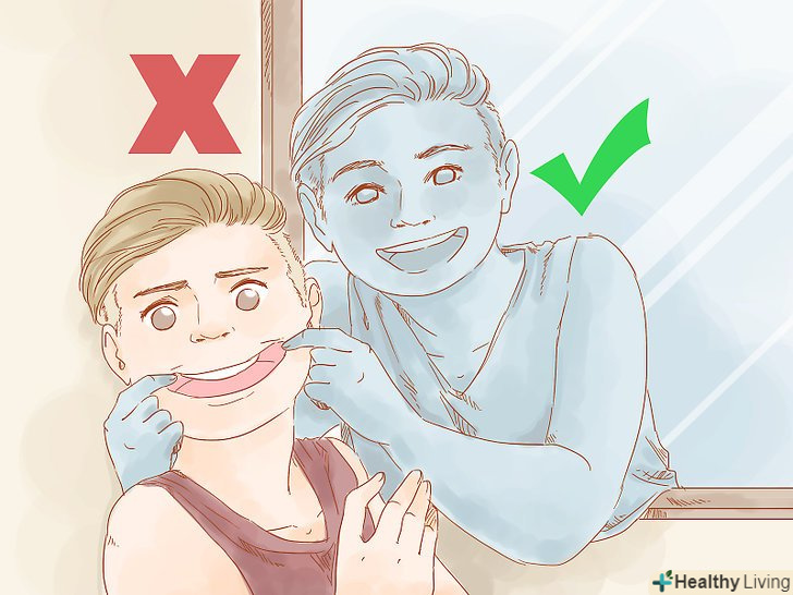 - Згідно з дослідженнями, можна «вчитися» посміхатися посмішкою Дюшенна. Один із способів-згадати або уявити собі ситуацію, в якій ви відчуваєте сильні позитивні емоції: радість або любов. Спробуйте висловити ці емоції через посмішку, стоячи перед дзеркалом. Перевірте, чи з'явилися в куточках ваших очей зморшки – це головна ознака «справжньої» посмішки. [26]