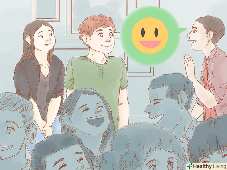 Вчіться посміхатися. якщо ви коли-небудь чули вираз «посміхатися одними очима», то майте на увазі, що за ним стоїть наукове дослідження. Люди можуть відрізнити "справжню" посмішку від удаваної за рахунок того, що для справжньої потрібно задіяти набагато більше м'язів обличчя. [23] існує навіть термін «посмішка Дюшенна», що позначає справжню посмішку. Така посмішка задіє м'язи навколо рота і навколо очей. [24]- Доведено, що посмішка Дюшенна знижує рівень стресу і збуджує почуття щастя у того, хто посміхається. [25] а якщо ви станете відчувати менше тривоги, то і товариськість буде даватися вам набагато простіше.