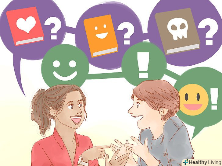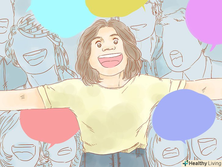 Вступіть в клуб. якщо ви не впевнені, як зав'язувати контакти в суспільстві, запишіться в клуб за інтересами. Вам випаде маса можливостей поспілкуватися, як правило, у вузькому колі, з людьми, яких пов'язують спільні інтереси. [6]- Знайдіть клуб, який створений спеціально, щоб стати середовищем для спілкування людей один з одним, наприклад, клуб книголюбів або любителів кулінарного мистецтва. Можна задавати питання і вступати в дискусії, але при цьому основна увага буде не на вас. Подібний контекст просто ідеальний для сором'язливих людей.