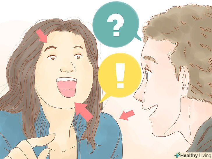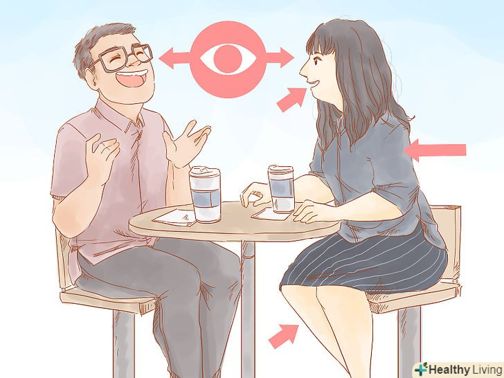 Висловлюйте за допомогою тіла свій інтерес. крім того як ви сидите або стоїте, коли перебуваєте самі по собі, можна використовувати мову тіла і в процесі спілкування. "Відкриті" жести демонструють вашу зацікавленість в співрозмовнику і готовність продовжувати спілкування. [19]- Відкриті жести мають на увазі відсутність схрещування рук і ніг, посмішку і прямий спокійний погляд. [20]