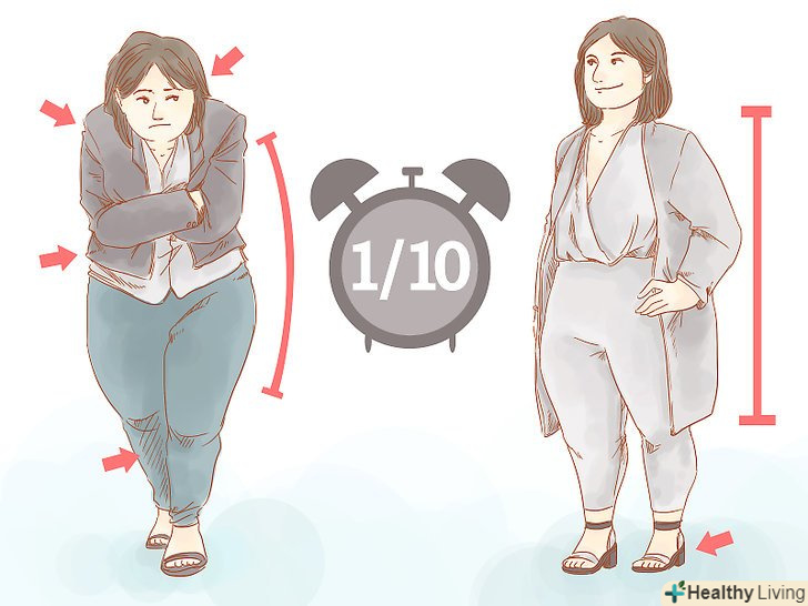 - З іншого боку, відкритість жестів демонструє впевненість і силу. Необов'язково займати занадто багато місця або вторгатися в простір інших – досить комфортно утвердитися у власному просторі. Стоячи або сидячи, ставте обидві ноги твердо на поверхню. Розправте плечі і на закривайте область грудей. Намагайтеся не метушитися, не мотати головою з боку в бік і не переминатися з ноги на ногу. [14]