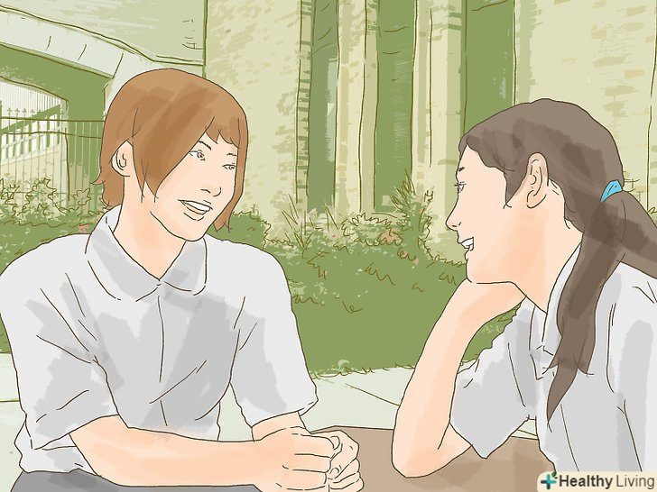 Будьте доброзичливі з людьми на навчанні або на роботі. Спілкуйтеся з однолітками в класі або групі, особливо з тими, хто сидить поруч з вами. Також приділяйте увагу своїм колегам, щоб розширити коло спілкування. [3]- Так, щоб зав'язати бесіду, можна запитати однокласника або однокурсника: "ти вже почав (а) готуватися до тесту?"або" як пройшов іспит?”