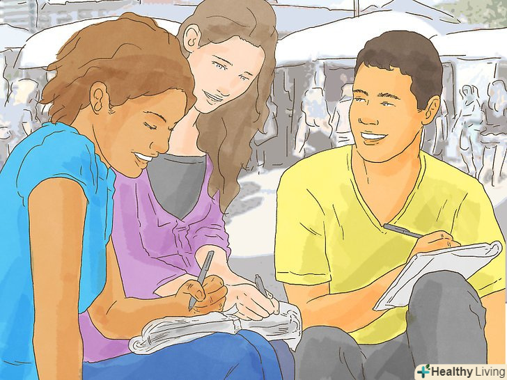 Запишіться в гурток або вступите в клуб за інтересами. Знайомтеся з новими людьми і спілкуйтеся з ними, наприклад, вступивши в шаховий або мовний клуб в школі. Або можна стати членом якої-небудь групи на роботі (відділ з організації розважальних заходів або волейбольна команда). [5]- Можна записатися на курси і поза навчання або роботи. Наприклад, брати уроки малювання або активно займатися спортом.