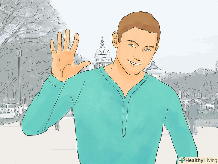 Демонструйте мову тіла. під час привітання Зберігайте зоровий контакт. Тіло повинно бути повернуто в сторону співрозмовника, а руки розслаблено лежати з боків. Також подайтеся злегка вперед до людини. Так ви покажете свій інтерес і захопленість розмовою. [7]- Ще можна кивати і посміхатися, висловлюючи своє бажання спілкуватися і налагоджувати контакт.