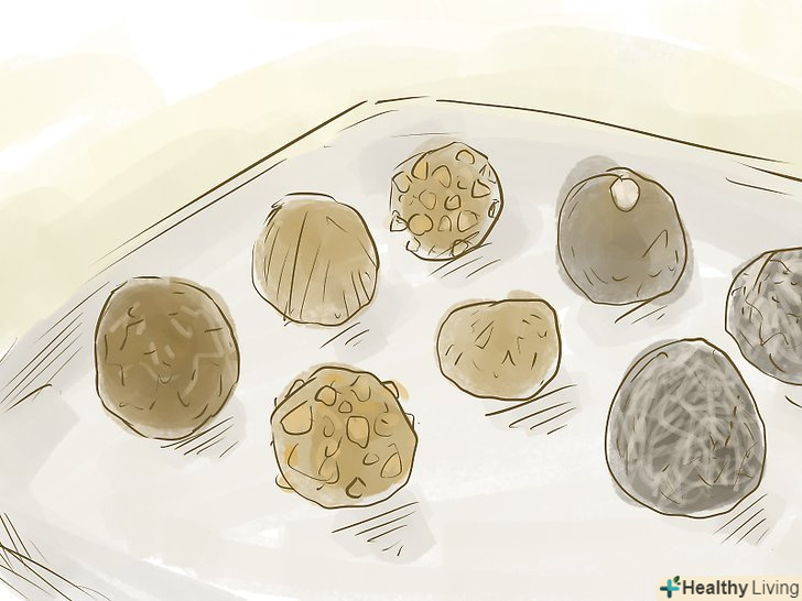 Зробіть шоколадні трюфелі. Візьміть 400-500 г шоколадної стружки і покладіть у велику миску. Доведіть чашку збитих вершків майже до кипіння (бульбашок бути не повинно), вилийте їх поверх шоколадної стружки. Потім почекайте близько хвилини, щоб шоколад підтанув, потім гарненько все перемішайте до однорідної консистенції. Поставте в холодильник на 45 хвилин, поки суміш не затвердіє. Потім ложкою візьміть трохи суміші (надавши їй кулясту форму) і занурте в свій улюблений Топпінг, а потім поставте в холодильник до тих пір, поки не захочете з'їсти. Отже, ось кілька ідей для смачних топінгів: [2]- Какао порошок;
