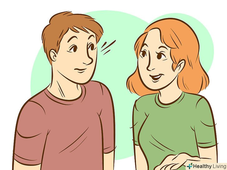 Часто посміхайтеся. Люди люблять бути в компанії тих, хто здається задоволеним. А посмішка показує, що ви зацікавлені в розмові і хочете дізнатися людину краще.- Посміхайтеся всім обличчям, а не тільки губами. Потренуйтеся перед дзеркалом, якщо по натурі ви не дуже усміхнена людина, щоб навчитися посміхатися очима.