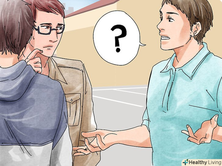 Якщо вам щось не ясно, запитайте у друзів. Нехай друзі задають один одному питання під час бесіди. Можливо, сварка була викликана якимось непорозумінням або трапилася помилково. Задавайте питання-це дуже корисно.- Наприклад, якщо один з друзів думає, що інший друг навмисно кинув його десь, а перший друг каже, що думав, що у другого друга вже є плани, то ця інформація має дуже велике значення.