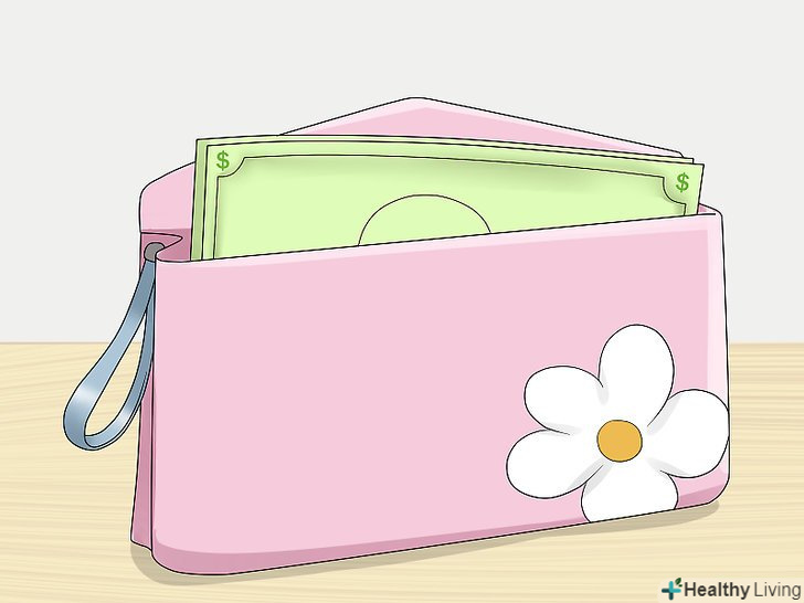 Покладіть гроші в сумку. можливо, можуть виникнути незаплановані витрати, наприклад, непередбачена надзвичайна ситуація, яка зажадає матеріальних вкладень. Тому візьміть з собою готівку.- Якщо ви переживаєте про це, ви завжди можете звернутися за допомогою до батьків друга, який запросив вас на вечірку.