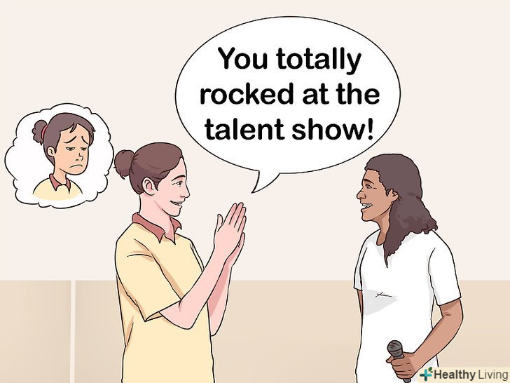Хваліть друга за його успіхи, навіть якщо ви заздрите йому. звичайно, немає нічого поганого в тому, щоб між друзями був невеликий дух суперництва. Однак важливо щоб він не переріс в щось велике. Радійте успіхам одного і не применшуйте їх. [16]- Можна сказати: «Ти здивував всіх на шоу талантів! Відмінна робота!»