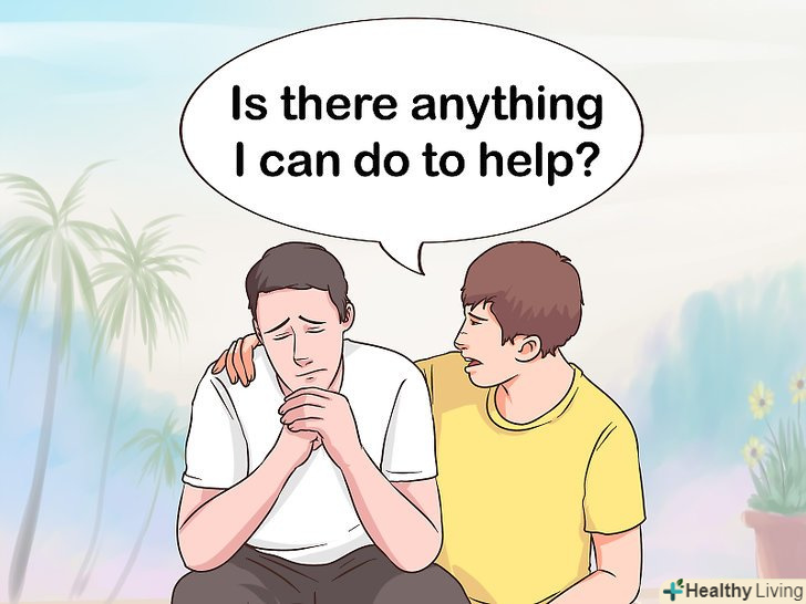 Запропонуйте свою допомогу, якщо друг її потребує. якщо ви знаєте, що друг переживає складний період часу або він дуже пригнічений, цікавтеся його справами. Зателефонуйте другу або відвідайте його. Дізнайтеся, чим ви можете йому допомогти. Навіть якщо ви не можете вирішити його проблему, ви в змозі вислухати його. Це буде для нього великою підтримкою. [9]- Наприклад, можна сказати: "я чув, що ти втратив роботу. Я уявляю, як тобі складно зараз. Як я можу допомогти тобі?»