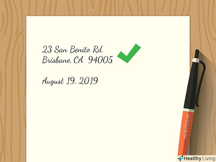 Напишіть свою адресу та дату. вкажіть свою нинішню адресу в лівому верхньому кутку листа. Це корисна інформація, оскільки друг міг втратити вашу адресу. Також вкажіть дату, щоб друг розумів, які часові рамки ви описуєте. [2]- Наприклад, якщо ви багато і часто листуєтеся, то дата дозволить зрозуміти, на який лист відповідає ваш друг.