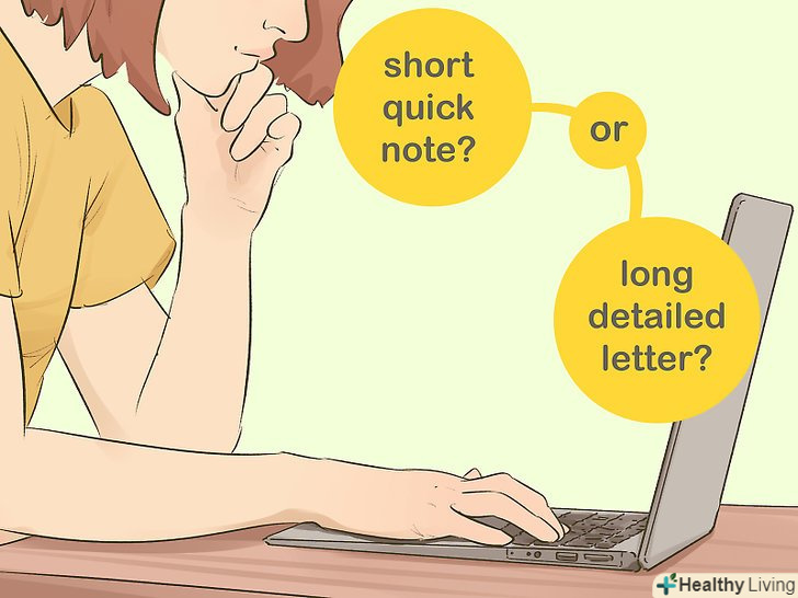 Визначте мету листа. ваше прагнення написати лист може бути обумовлено різними причинами. Можливо, ви хочете надолужити згаяне після довгої розлуки або поділитися зі своїм другом чимось важливим. Також в листі можна поцікавитися справами одного і розповісти про себе. [1]- Якщо ви давно не отримували листів від одного, то дізнайтеся, чи все у нього в порядку і чим він зайнятий.