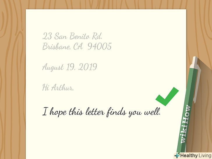 Висловіть своє розташування. після привітання напишіть пару пропозицій, що показують ваше розташування до читача. Уявіть, що це початок вашої бесіди з другом. Наприклад, можна використовувати фрази: [5]- "сподіваюся, що у тебе все добре";