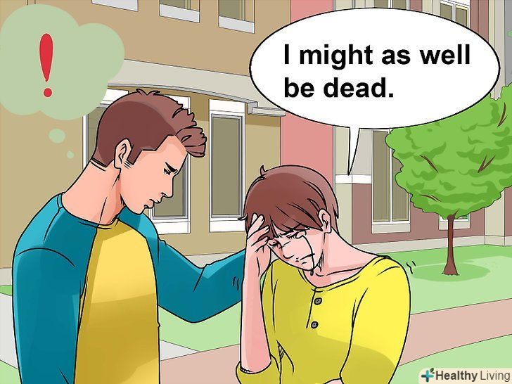 Проявіть пильність по відношенню до ознак суїцидальних думок. часто люди занадто пізно розуміють, що близька людина виявляв суїцидальні нахили, навіть незважаючи на їх вражаючу поширеність. Друг може мати схильність до самогубства після відмови, якщо при цьому він знаходиться в затяжній депресії. При виявленні наявності ознак, які наведені нижче, негайно обговоріть це питання з медичним працівником або психологом. При виникненні надзвичайної ситуації негайно телефонуйте на номер 112. Ознаки суїцидальних думок включають в себе наступні поведінкові реакції:- Людина купує спеціальні засоби для здійснення самогубства, такі як лікарські препарати (для передозування) або пістолет.