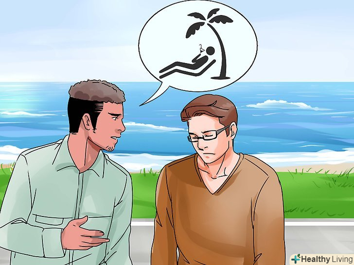 Знайдіть спосіб підняти співрозмовнику настрій. що приносило задоволення вашому другові вщерть? Постарайтеся знову викликати інтерес до його старим захопленням. Проводьте час разом, вирушайте в похід, дивіться спортивні матчі або сходіть в кіно. [10]- Ваш друг може переживати фінансове потрясіння, якщо відмова призвела до втрати доходу. Переконайтеся, що спільне проведення часу не вимагає грошових витрат, інакше це лише погіршить моральний стан вашого друга.
