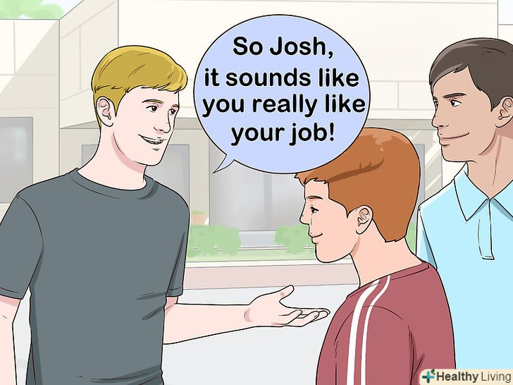 Розвивайте свої розмовні навички. чим ефективніше ви спілкуєтеся з людьми, тим більше у вас буде друзів. Під час розмови уважно слухайте і задавайте уточнюючі питання. Часто називайте людину на ім'я, щоб викликати прихильну реакцію. [7]- Наприклад, можна сказати: "що ж, Саша, схоже, ти в захваті від нової роботи! Ти плануєш залишитися тут на довгий час?»