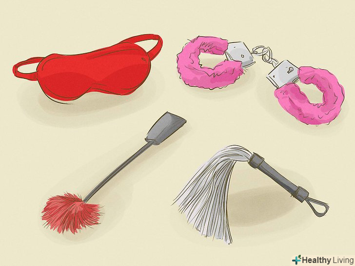 Додайте кілька аксесуарів для ваших повсякденних танців, предмети, з якими ви любите грати. ви робите це і для свого задоволення.- Зав'язані очі допоможуть зберегти почуття вашого партнера в напрузі. Він буде заінтригований дізнатися, що ж буде далі.