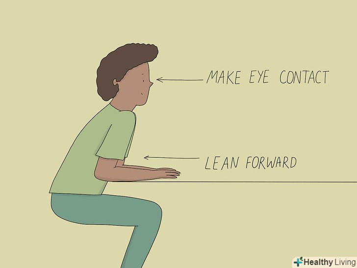 - Нахиліться вперед. Психологи кажуть, що, нахиляючись вперед під час розмови, люди проявляють інтерес до обговорюваної проблеми. Люди будуть вважати вас цікавим в спілкуванні, якщо ви будете виглядати зацікавленим в темі Розмови. Вам потрібно лише злегка нахилитися вперед над столом при розмові з другом. [6]