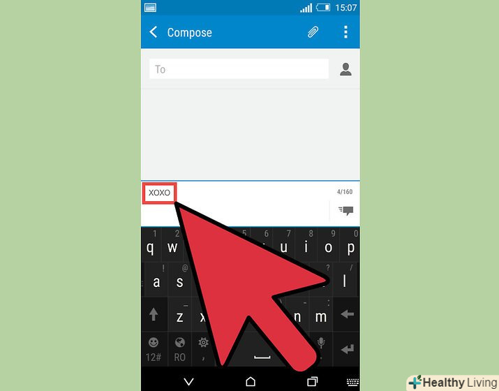 Використовуйте "хохо". До того як з'явилися смс, люди використовували букви «хо» для позначення обіймів (х) і поцілунку (о). Цей простий, традиційний і загально визнаний спосіб можна використовувати для відправки поцілунку коханій людині.- Більшість людей використовують "хохо" в кінці повідомлення, але насправді використовувати ці букви можна як завгодно.