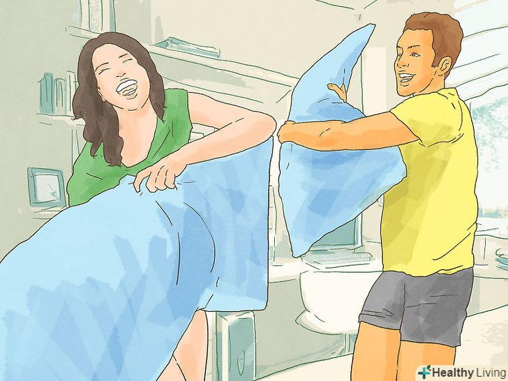 Заплануйте несподіваний бій подушками. наступного разу, коли ви будете відпочивати на ліжку або дивані зі своїм хлопцем, схопіть подушку і вдарте його. Не встигнете озирнутися, як почнеться повномасштабна битва подушками. [12]- Виберіть відмінну зброю! Найкращі подушки для бою-м'які і наповнені пухом, поліестером, бавовною або шерстю. [13]