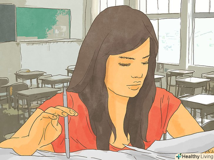 Відверніться. якщо ви постійно поруч з хлопцем, який вам подобається, і ви відчуваєте себе пригнічено, постарайтеся звернути увагу на що-небудь інше. Наприклад, конспектуйте лекцію або вчіть матеріал до заліку. Почніть читати книгу. Поговоріть з подругою. Якщо ви на занятті, уважно слухайте викладача. Якщо ви не на занятті, пограйте в гру або зателефонуйте/напишіть своїй подрузі.- Навіть якщо ви просто втупитеся в книжку, не прочитавши при цьому ні слова, Це все одно допоможе вам зберегти свої почуття в секреті.
