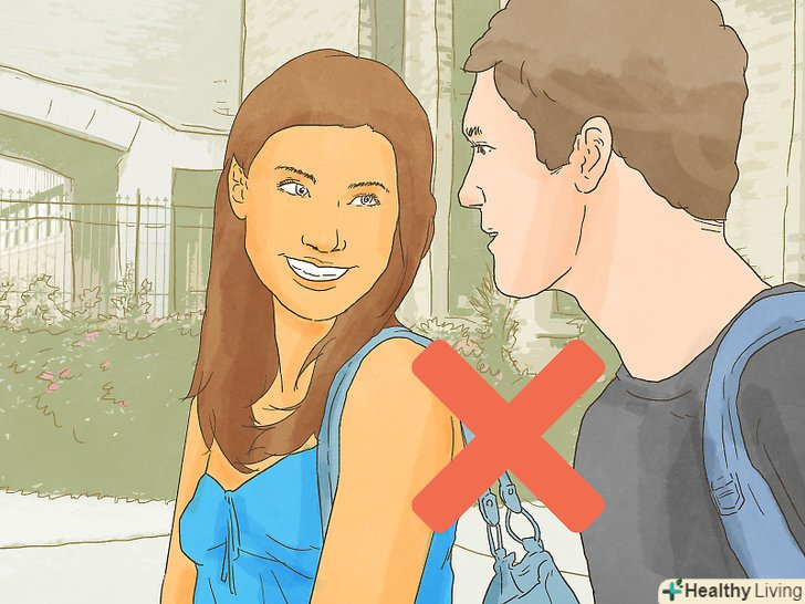 Не варто занадто часто дивитися хлопцеві в очі. очі часто говорять за нас. Іноді це дуже корисно. Але якщо ви все ж хочете приховати свої почуття від хлопця, зоровий контакт вам тільки завадить. Тому не дивіться занадто довго в очі хлопцеві, який вам подобається, інакше все тут же стане зрозуміло!- Не потрібно намагатися весь час ховати погляд від цього хлопця. Така поведінка в результаті створить негативне враження про вас, нібито ви сором'язлива і невпевнена в собі дівчина.