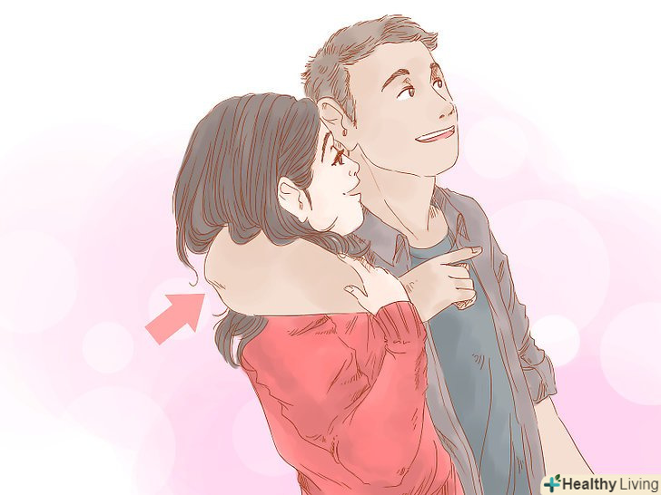 - Якщо дівчині сподобається те, що ви робите, можна спробувати доторкнутися до інших частин її тіла. Наприклад, якщо ви гладите дівчину по спині, можна спробувати опустити руки трохи нижче; якщо ви обіймаєте її за талію, можна опустити руки на її стегна. Спостерігайте за її поведінкою: ознаками того, що дівчині подобаються ваші дотики, будуть посмішка і рух назустріч вашим дотикам.