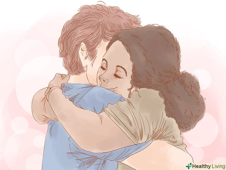 Ніжно обійміть її. обійми-відмінний спосіб проявити ласку, крім того, на перших етапах відносин найчастіша форма ласки — це прості обійми. Можете обійняти дівчину і потім приголубити її, щоб продовжити обійми і насолодитися моментом.- Спробуйте обійняти дівчину на прощання, а потім ніжно погладьте її по спині однією рукою, не припиняючи обіймів. Якщо їй це сподобається, можете однією рукою ніжно доторкнутися до її обличчя і акуратно провести рукою по щоці.