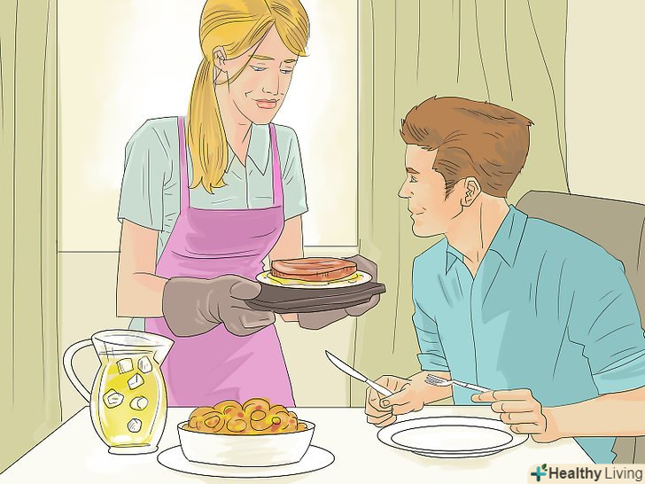 Приготуйте його улюблену вечерю. це може здатися старомодним, але у виразі "шлях до серця чоловіка лежить через його шлунок" міститься трохи більше, ніж зерно істини. Крім смачної страви, він оцінить час і зусилля, витрачені виключно заради його задоволення.- Подумайте про те, що приготувати . Що він вважає за краще: смаженого курчати з овочами? Ідеально приготований стейк? Або він любить щось просте, на зразок макаронів з сиром або супу з фрикадельками?