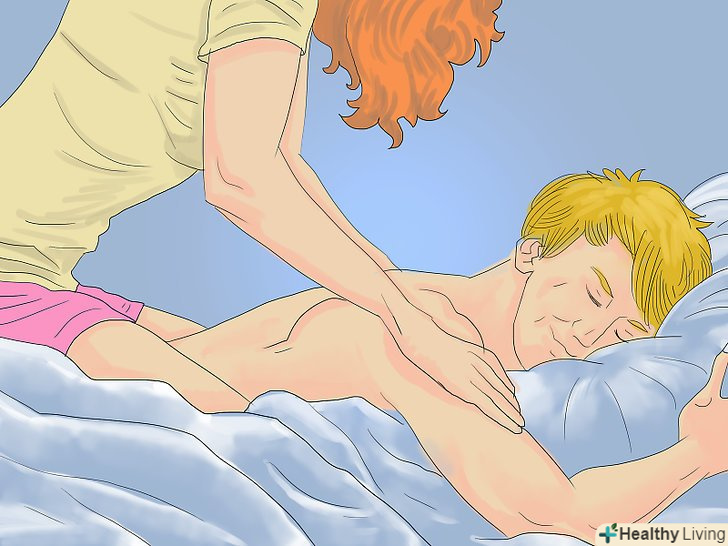 - Попросіть його зняти одяг (можна залишити нижню білизну, якщо він так вважає за краще) і лягти на ліжко обличчям вниз. Почніть зі ступень, потім ноги, спина і плечі, далі шия і потилицю. Розімніть всі м'язи сильними, впевненими і в той же час повільними і розслаблюючими рухами.