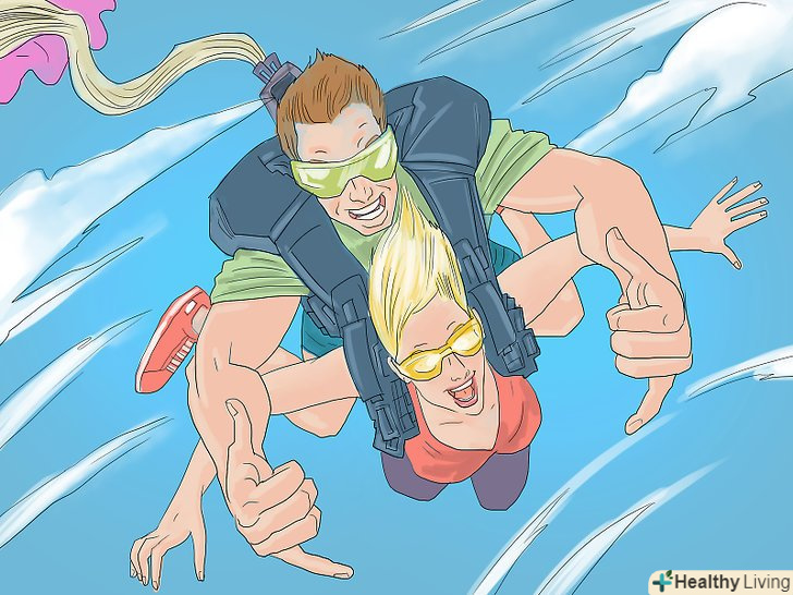 Подаруйте йому якийсь приголомшливий досвід. замість того щоб дарувати річ, розгляньте можливість подарувати досвід, який запам'ятається йому на все життя (і дасть вам право на номінацію дівчини року).- Якщо ваш хлопець фанат адреналіну, запишіть його на стрибок з парашутом. Це досить поширена і не дуже дорога послуга. Якщо ви самі готові до пригод, запишіться разом з ним!